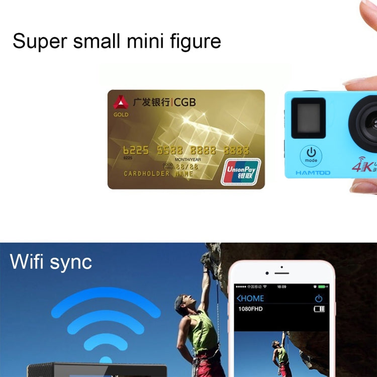 HAMTOD H12 UHD 4K WiFi Sport Camera with Waterproof Case (Blue)