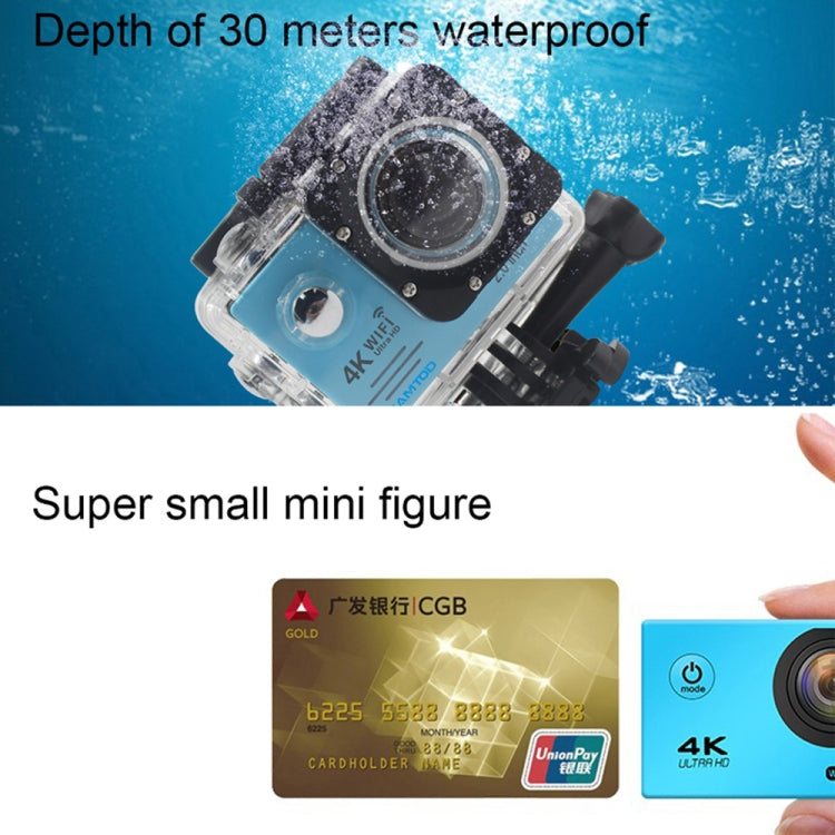 HAMTOD HF60 UHD 4K WiFi 16.0MP Sport Camera with Waterproof Case, Generalplus 4247, 2.0 inch LCD Screen, 120 Degree Wide Angle Lens, Simple Accessories(Blue)