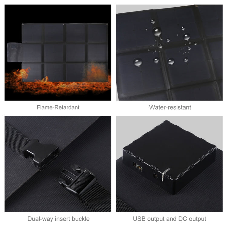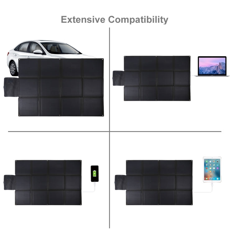 HAWEEL 150W 12-Fold ETFE Solar Panel Charger with USB and DC Output - Black
