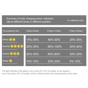 - Note: This solar charger does not have a storage power function; charging is based on sunlight brightness. It is recommended to pair with a power bank for optimal use.