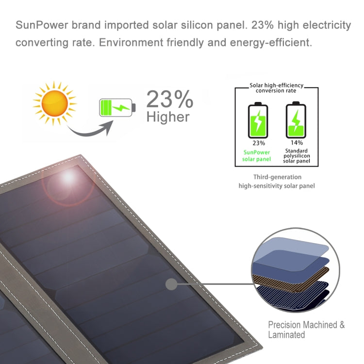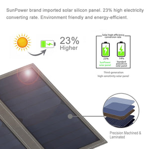 - Highly Efficient: Features imported Sunpower solar panels for highly efficient sun power transformation, ensuring stable voltage output and worry-free device charging.