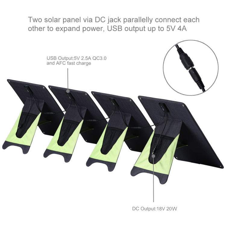 HAWEEL 4 PCS 20W Monocrystalline Silicon Solar Power Panel Charger with USB & Holder (Black)