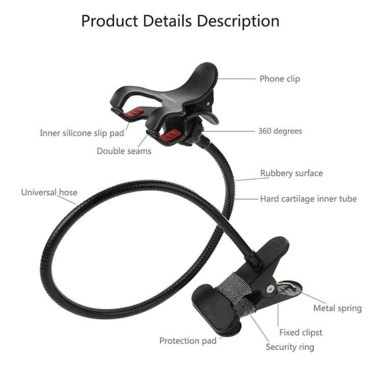 Long Arm Flexible Lazy Bracket Holder with Clamping Base (Black)