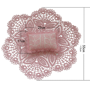 Set the stage for adorable baby photos with this exquisite Hollow Lace Round Blanket + Pillow Suit. Crafted from high-quality polyester, this set is designed to elevate baby photography and scene decoration.
