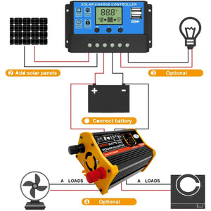 Versatile Home Solar Generator Inverter Kit with 30A Controller and 18W 12V Solar Panel