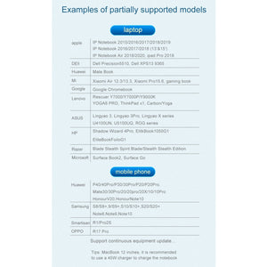 - USB-C port allows for efficient laptop charging, automatically adapting from 5W to 60W