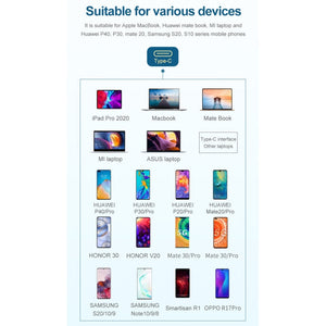 - Compatible with laptops, mobile phones, and tablets featuring USB-C ports