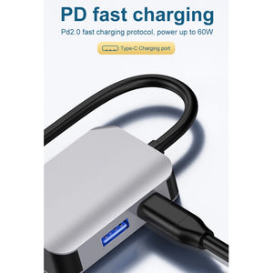 3-in-1 Type-C HDMI PD USB 3.0 Docking Station Adapter - Grey