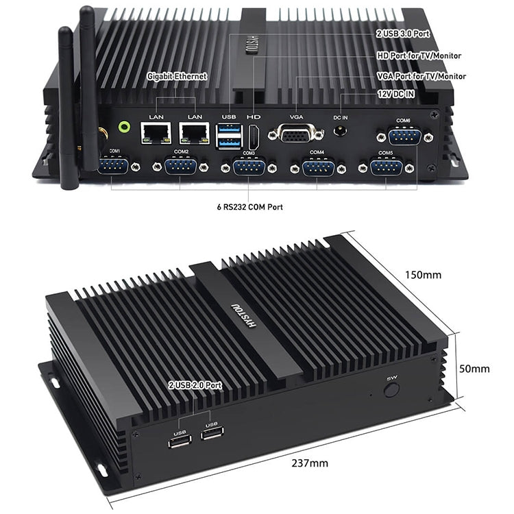 - Expandable Ports: With a variety of ports including USB 3.0, USB 2.0, VGA, HD, audio, DC-in, RJ45, RS232, and RS485, connect multiple devices effortlessly.