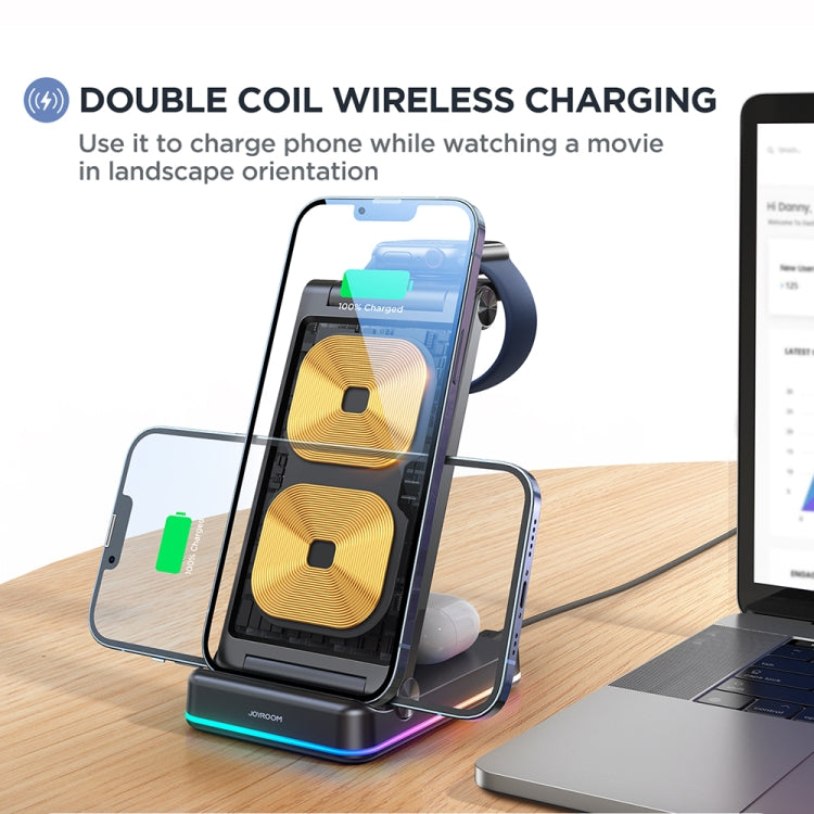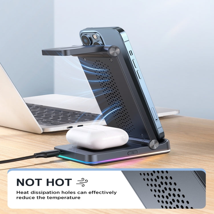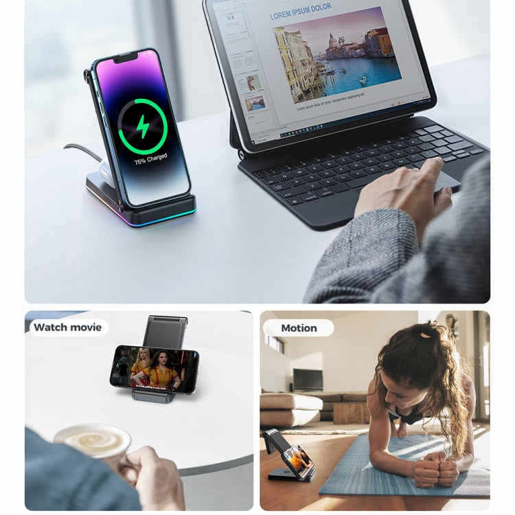 15W 3 in 1 Foldable Wireless Charger with Colorful LED Lighting (Black)