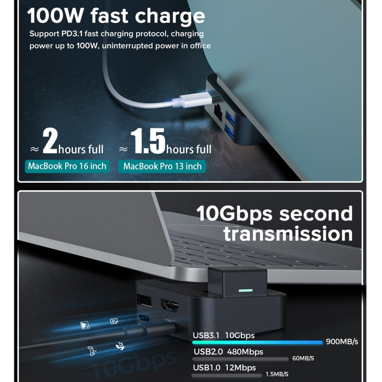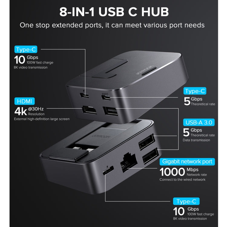 JOYROOM S-H121 8 In 1 Multi-function Magnetic USB HUB Docking Station (Grey)