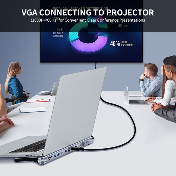- Extensive Capability: This USB Type-C hub offers a wide range of ports including Micro SD card reader, TF card reader, USB 3.0 Ports, USB 2.0 ports, Type-C PD charging port, USB C transfer port, 4K HDMI video output, VGA video output, 3.5mm audio port, and RJ45 ethernet port.