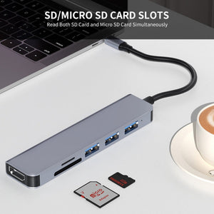 JUNSUNMAY 6 in 1 USB-C Hub with 4K HDMI Docking Station Adapter and SD/TF Card Reader