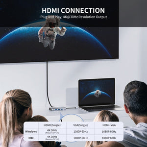 JUNSUNMAY 7-in-1 USB-C Docking Station with 4K HDMI / VGA / Ethernet and USB Ports