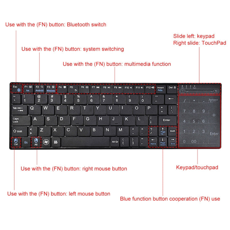 K-07 Black Wireless Rechargeable Bluetooth Touch Keyboard
