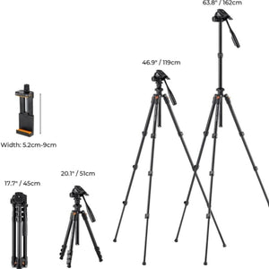Versatile Lightweight Aluminum Tripod for DSLR Cameras and Phones