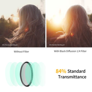 Create stunning cinematic effects and professional portrait photography with the K&F Concept 82mm Black Diffusion 1/4 Lens Filter Kit.