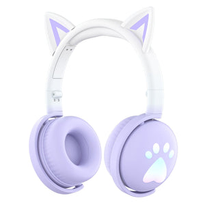 Wireless Stereo Music Headset with Rainbow Cat Ear Design and Detachable Mic
