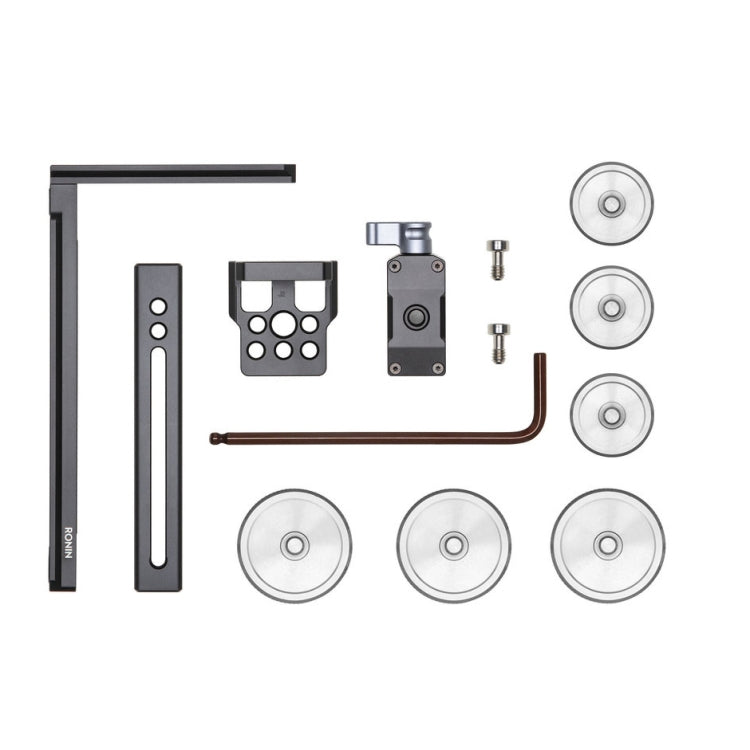- Package Contents: The comprehensive set includes an L-type adapter plate, L-shaped support plate, roller arm weight clamp, counterweight mounting rail, 200g weight blocks, 100g weights, screws, and a wrench for convenient assembly.
