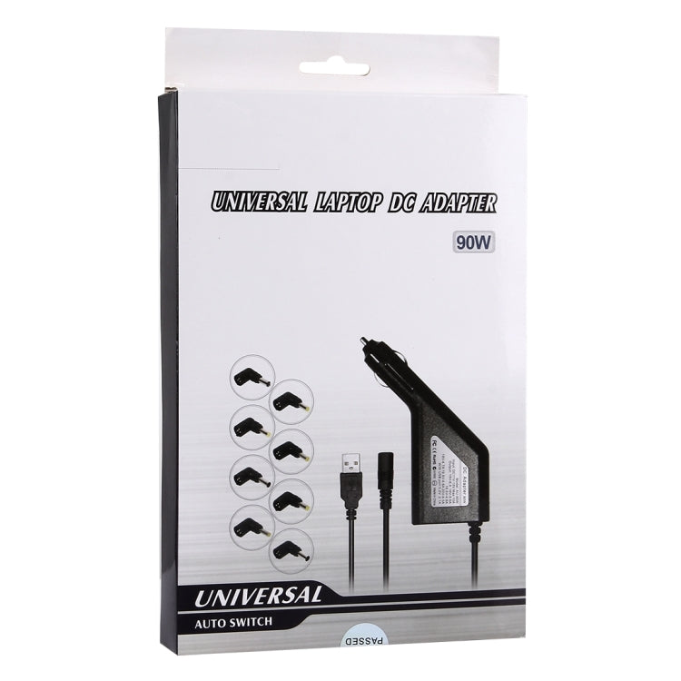 90W Universal Car Charger with 8 Power Adapters & 1 USB Port for Various Laptop Brands (Black)