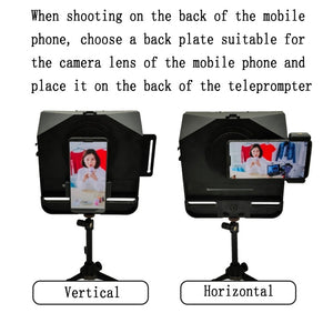 - Practical Design: The 1/4 screw hole at the bottom of the teleprompter makes it easy to mount, while the back plate ensures a perfect fit for your mobile phone's camera lens.