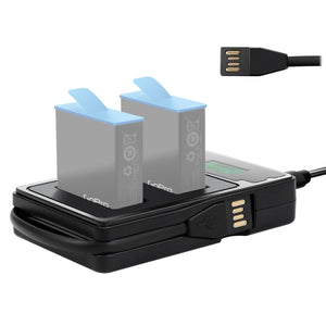 LCD Screen Dual Batteries Charger with Charging Capacity Display for GoPro HERO9 Black / HERO10 Black (Black)