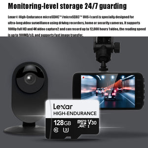 Whether you're capturing crucial moments on the road or monitoring your surroundings, the Lexar MicroSDHC 128GB High-endurance Memory Card delivers the durability and performance you need.