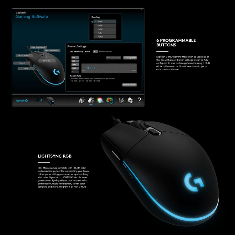 Logitech G Pro Wired Optical Gaming Mouse with 16000 DPI and RGB Illumination (Black, 1.8m)