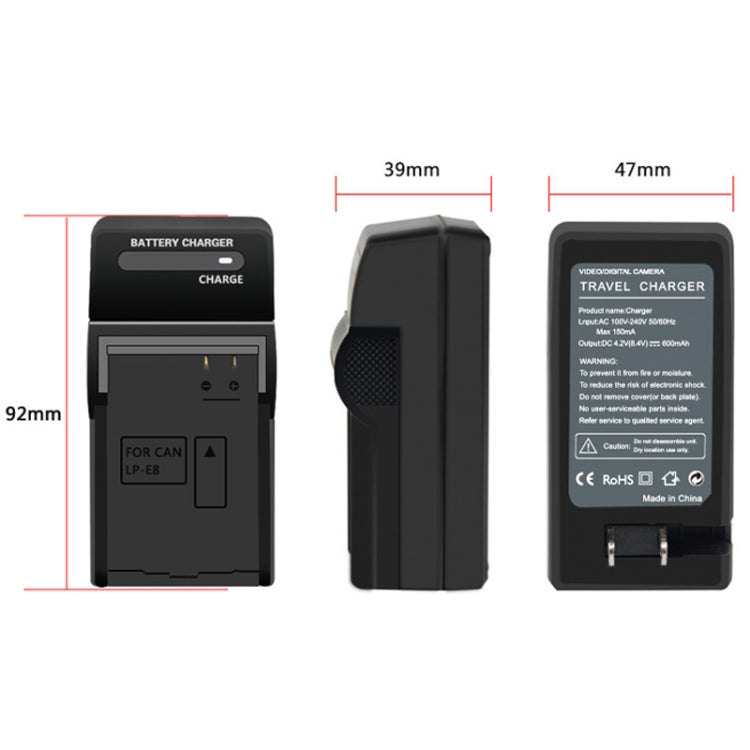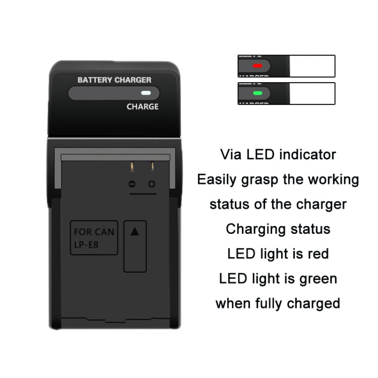 Experience the convenience and reliability of the LP-E8 Single Charge Battery Charger, designed to meet your lithium battery charging needs. (Note: battery not included)