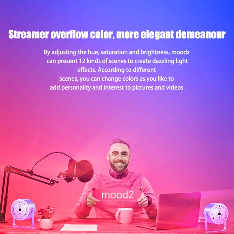 Enhance your space with the LUXCEO Mood2 RGB Atmosphere Fill Light. Let the intelligent voice recognition synchronize with the music rhythm, creating an immersive experience. With 10 built-in scene light effect modes and the ability to switch between various colors, you can set the perfect ambiance for any occasion. The brightness is fully adjustable, providing the flexibility to suit your preferences.