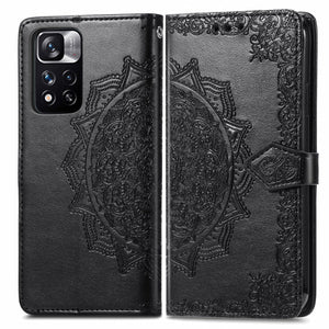 Embossed Mandala Flower Leather Phone Case for Xiaomi Redmi Note 11 Pro / 11 Pro+ (Black)