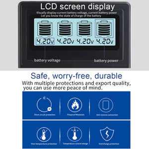 4-Slot Micro USB Battery Charger with LCD Display for 3.6V Lithium-ion Batteries