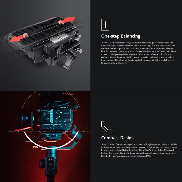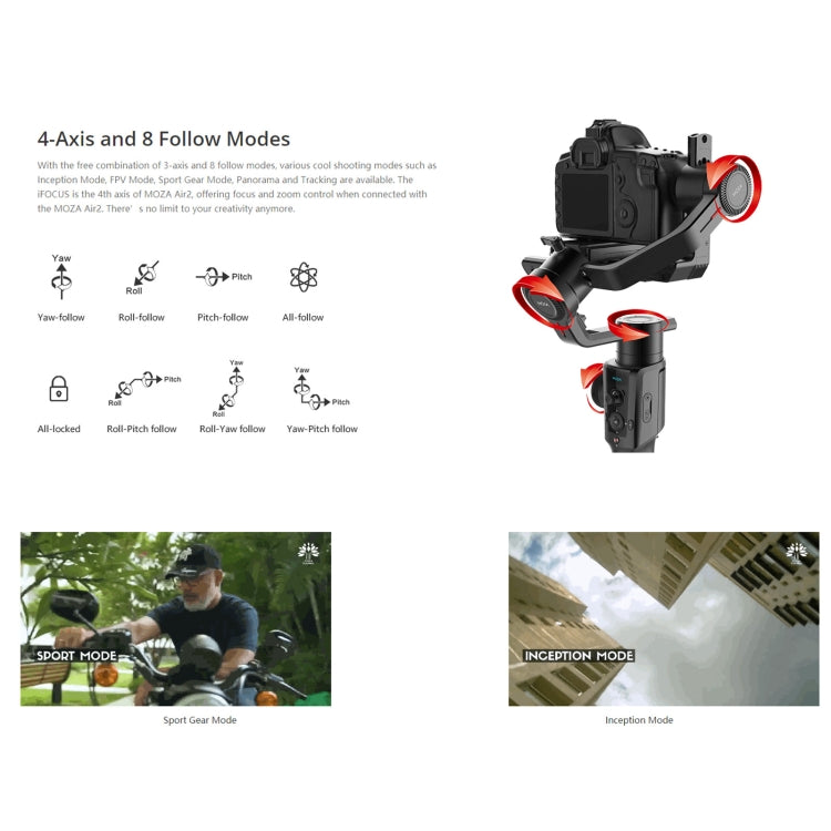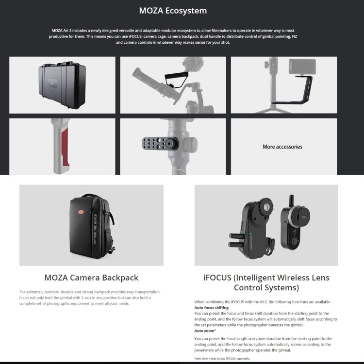 MOZA Air 2 + iFocus-M + Fashion Backpack 3-Axis Handheld Gimbal Stabilizer for DSLR Camera (Black) - 4.2kg Payload, Long Battery Life