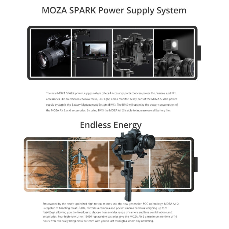 - Spark power supply system: Gimbal can power the camera and other accessories