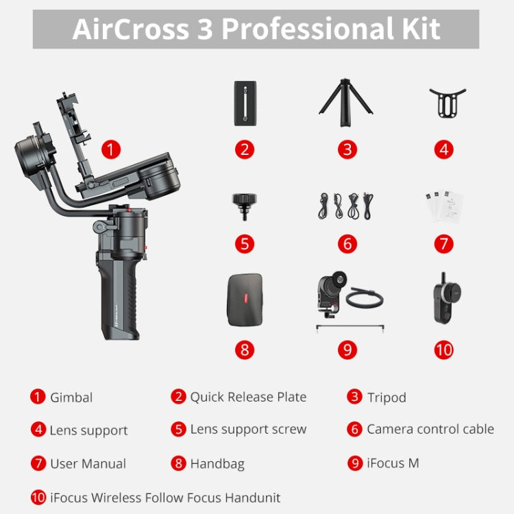 Upgrade your filming experience with the MOZA AirCross 3 3-Axis Handheld Gimbal Stabilizer. This professional-grade stabilizer offers a wide range of features and functionalities to elevate your photography and videography.