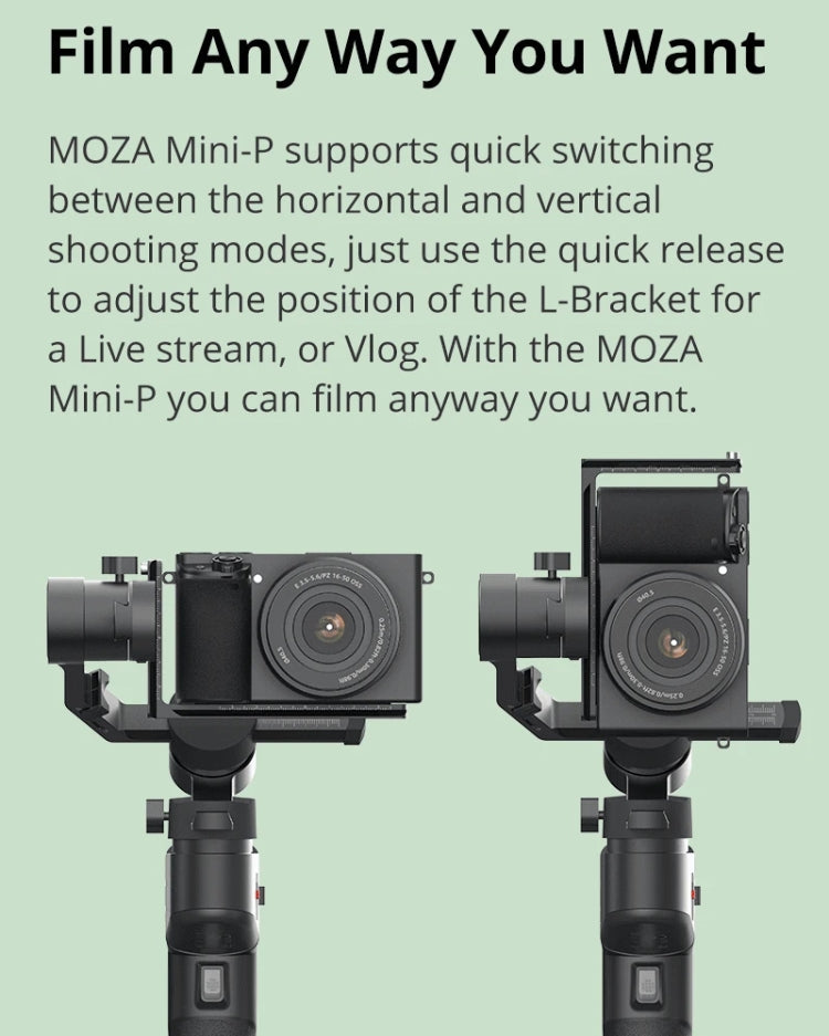 - Quick Switching Between Horizontal and Vertical Shooting: Easily switch between horizontal and vertical shooting modes for live streaming or vlogging with the quick release L-Bracket.