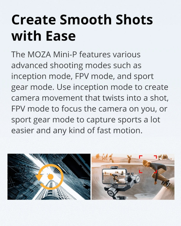 Unlock your creativity and capture smooth, professional footage with the MOZA Mini-P 3 Axis Handheld Gimbal Stabilizer, the compact yet powerful stabilizer for