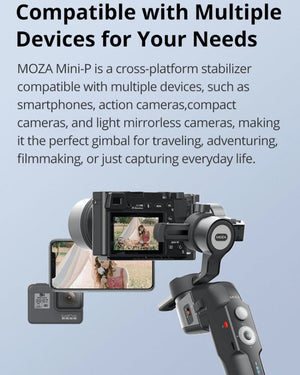 Experience professional-quality stability and control with the MOZA Mini-P 3 Axis Handheld Gimbal Stabilizer. Whether you're using a smartphone, action camera, compact camera, or light mirrorless camera, this gimbal delivers exceptional performance and versatility.