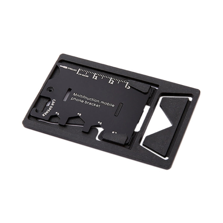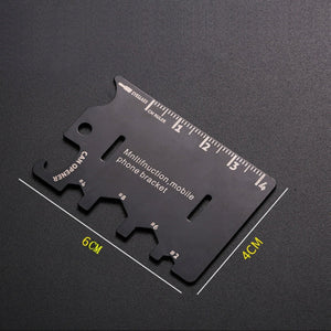 - Multi-functional design for use as a bottle opener, mobile phone bracket, and tool card