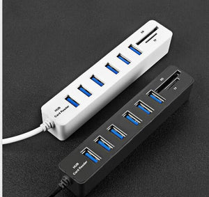 High Speed 6-Port USB 2.0 Hub with TF SD Card Reader in Black