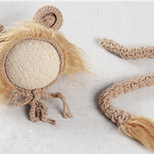 Adorable Newborn Lion Hat and Tail Set for 0-2 Month Photoshoots