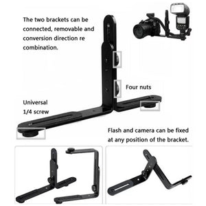 Enhance your photography experience with the NST-6494 Aluminum Alloy 1/4 inch Hot Shoe Adapter. This versatile camera double L shape flash bracket offers a range of benefits to elevate your photos to the next level: