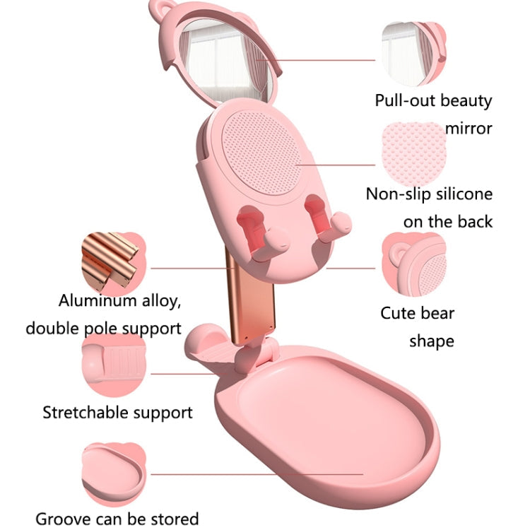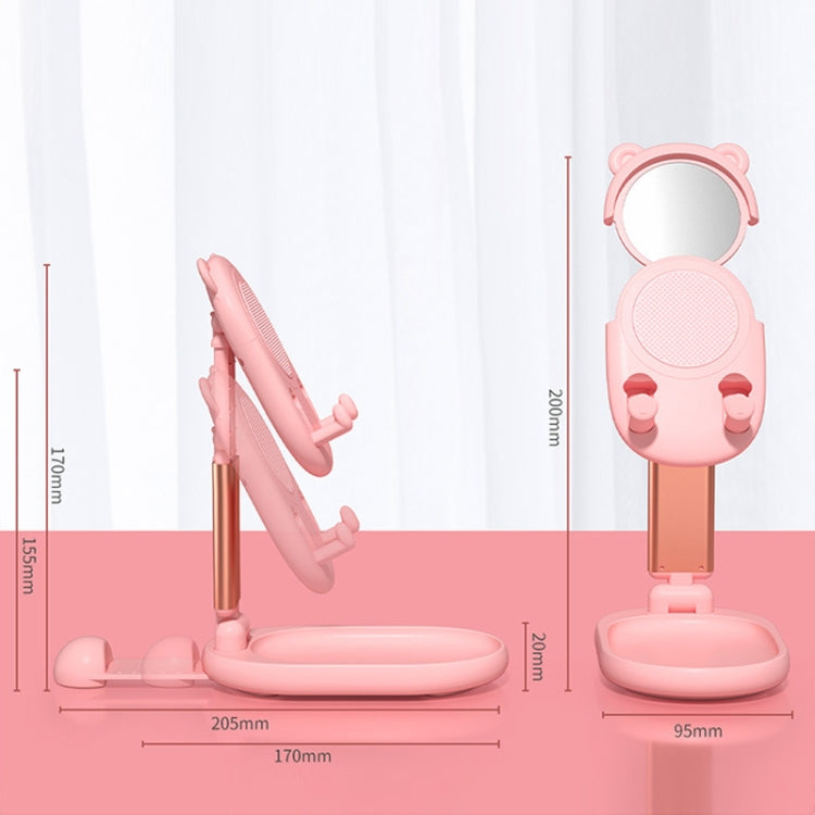 Desktop Phone Holder Beauty Mirror Folding Storage Holder - Pink