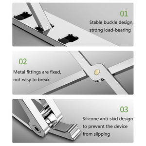 Experience ergonomic comfort and efficient cooling for your laptop with this versatile and sleek silver stand.