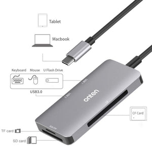 Onten 5-In-1 USB3.0 and Type-C OTG Multi-function Card Reader with Aluminum Alloy Build
