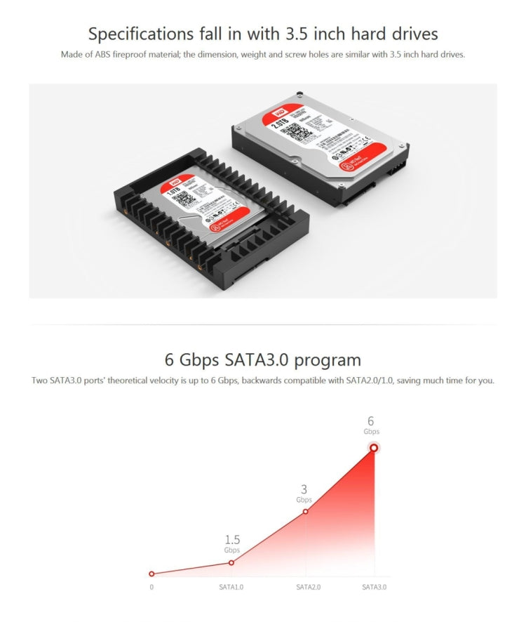 ORICO 1125SS SATA 3.0 2.5 to 3.5 inch Hard Drive Caddy Enclosure - Black