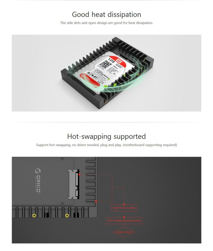 - Heat Dissipation: The side slots and open design contribute to effective heat dissipation, maintaining optimal operating temperatures for your drives.