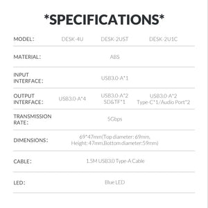 Effortlessly expand your connectivity and enhance your workspace with the ORICO DESK-4U-BK 4 USB3.0 Port Multifunction Desktop Hub.