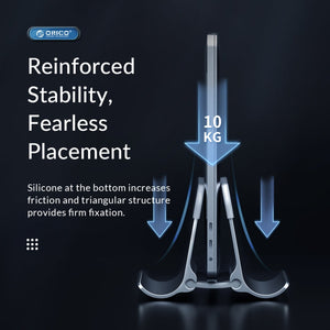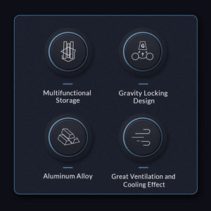 - Gravity Locking Stand: The ORICO vertical laptop stand features a gravity locking design that automatically secures your laptop in place upon placement, requiring no adjustments.