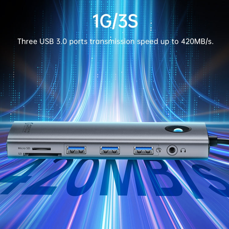 ORICO PW11-8PC Type-C / USB-C 8-in-1 5Gbps Multifunction Docking Station in Dark Gray